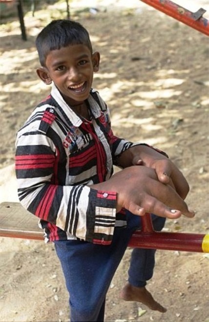 Chân dung cậu bé Kaleem - một trường hợp của dị tật Macrodactyly khiến chi phát triển bất thường.