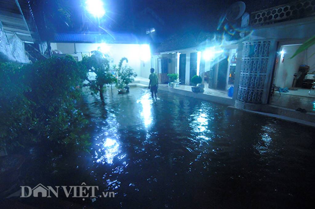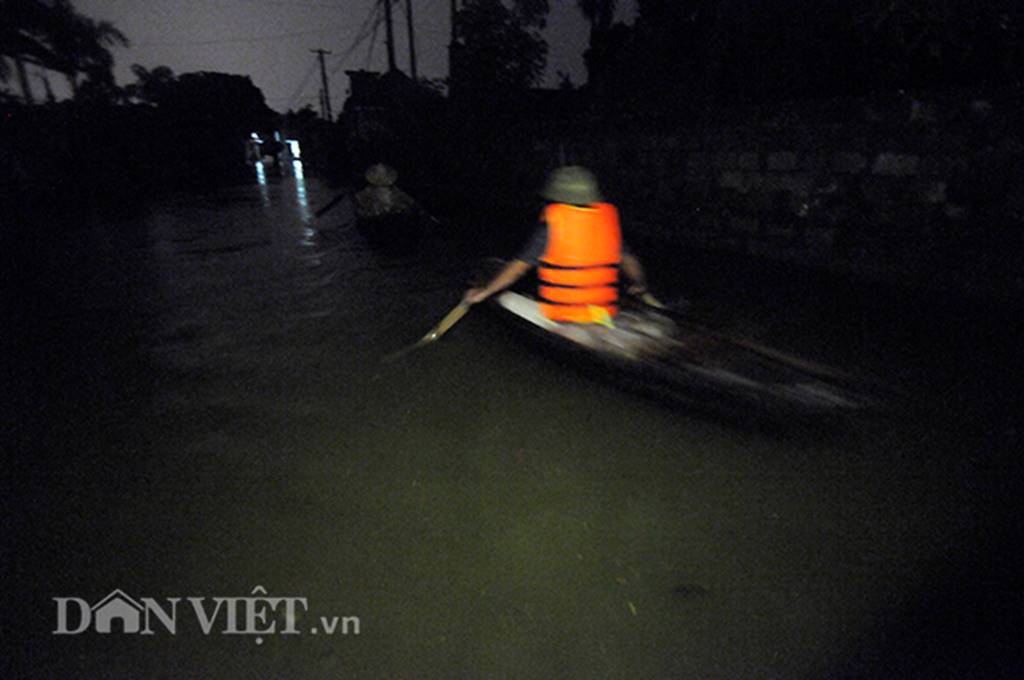 Màn đêm buông xuống, từ đầu xã Nam Phương Tiến đến cuối xã tối om như mực do các hộ dân đã di cư lánh nạn gần hết, chỉ còn mấy hộ dân nhà cao nước ngập ở sân cố gắng bám trụ lại.