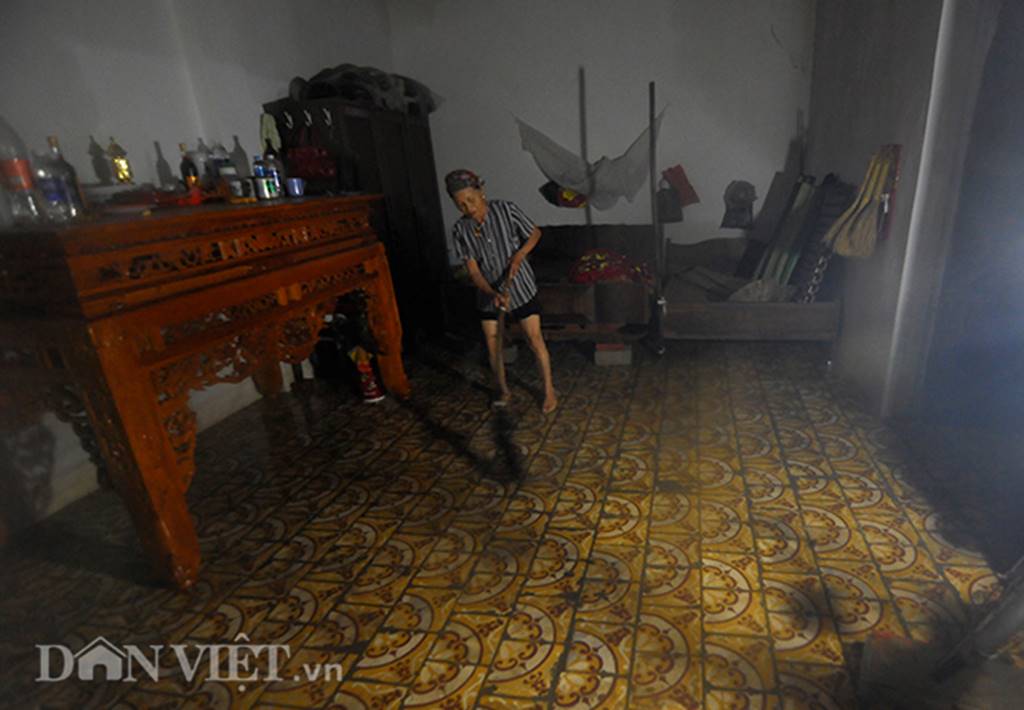Trong màn đêm, với ánh sáng yếu ớt leo lắt hắt ra từ chiếc đèn pin mới mua, bà Nguyễn Thị Duyên (56 tuổi, thôn Nam Hài) không ngủ được cứ lấy thanh gỗ chắn trước cửa ngăn bèo, rác bẩn trôi vào nhà… mỗi lần lội nước, leo lên giường bà không quên cầm theo ca nước sạch để rửa chân và bôi thuốc. Con cháu bà đã đi ở nhờ hết, nhà chỉ có bà và người con trai. Con trai bà chạy công nông cho xã, hôm nào có điện thì về ngủ, không thì ngủ ở xã.
