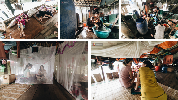 "Từ khi lên Hà Nội, chưa bao giờ em ở trên bờ", Thắm nhìn xa xăm. Ở đây, có người ở được một thời gian rồi lại lên bờ vì không quen hoặc vì không chịu được cảnh sống lay lắt như thế này: điện không, nước sạch không, xung quanh bốn bề nhiều rác thải. Thậm chí rời "nhà" đi làm, họ cũng chẳng sợ bị trộm lấy mất thứ gì. Vì cả cái thuyền nặng mấy tấn này chả có gì quý giá, ngoài những manh chiếu mỏng.