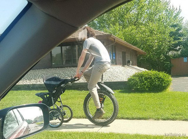 Ông bố "lười biếng" nhất mọi thời đại đưa con đi dạo.