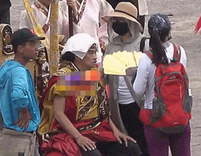 Vì thời tiết nóng bức, tuổi già sức yếu nên nam diễn viên liên tục cần người dìu đỡ, quạt mát và lau mồ hôi.