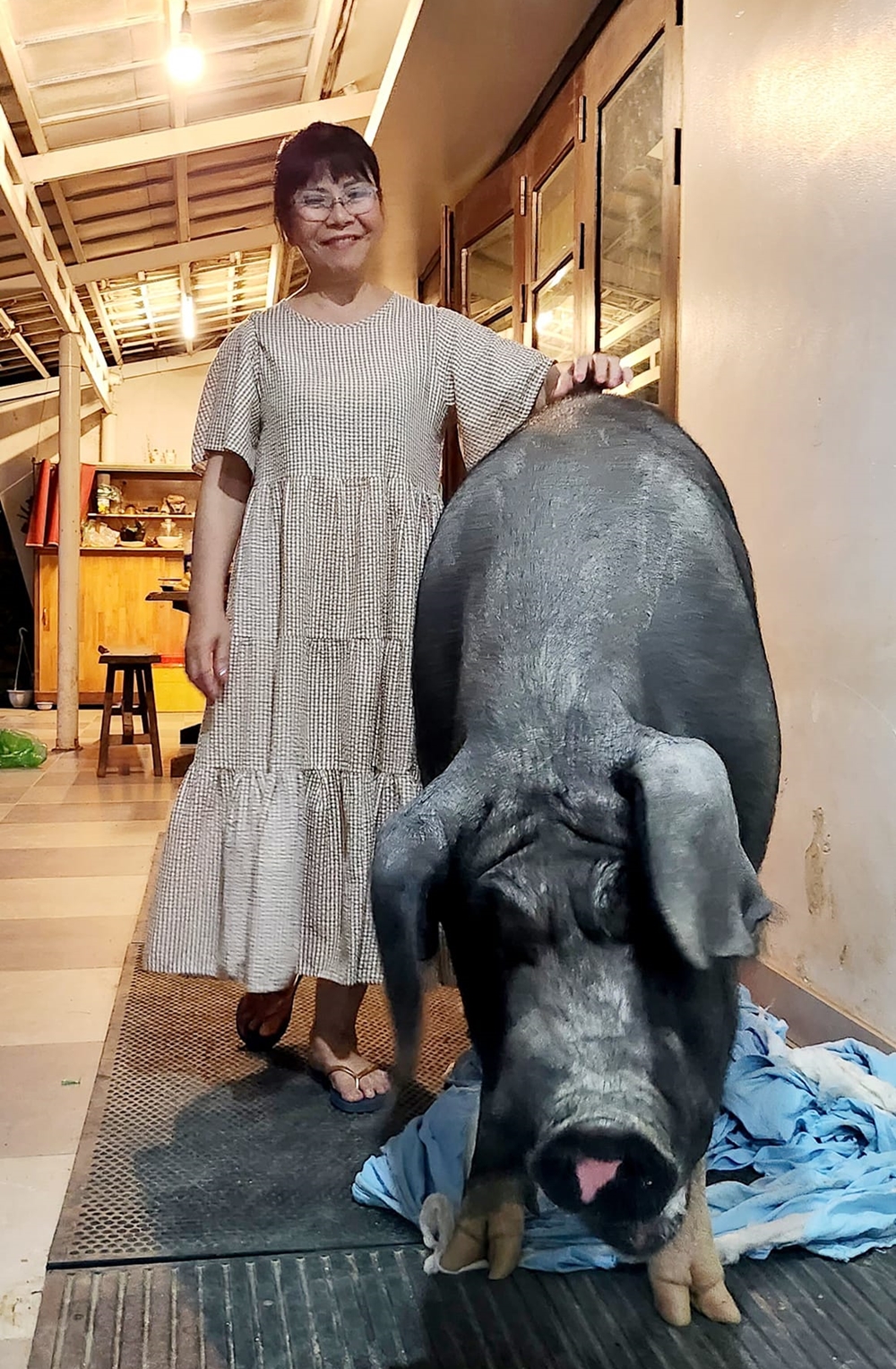 "Chúng tôi rất yêu chú heo này nên không từ bỏ được. Vấn đề sức khỏe cũng đáng lo nhưng hai vợ chồng già cả rồi, riêng tôi trong người còn nhiều bệnh nền, khó tránh những lúc như vậy", chị nói (nguồn: Vietnamnet).