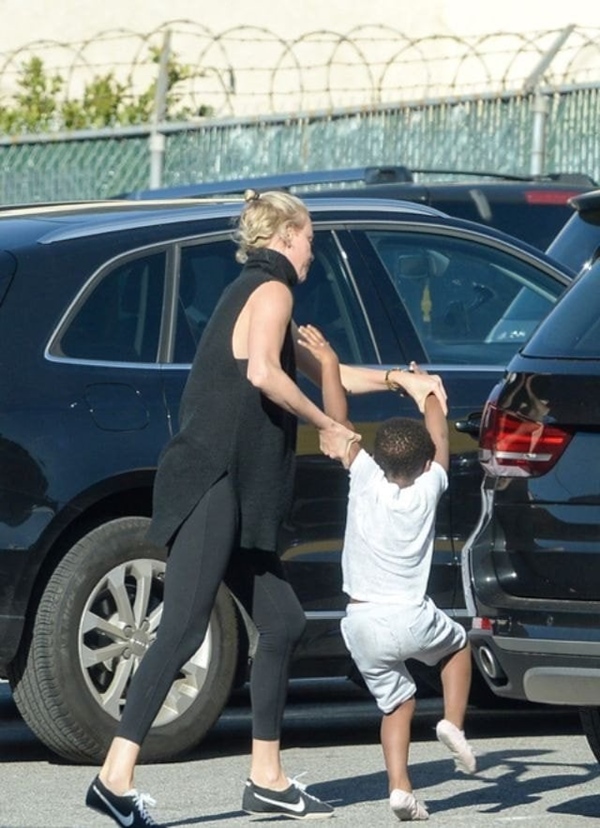 Hình ảnh Charlize Theron đuổi theo con trai vì cậu bé ghét đi học