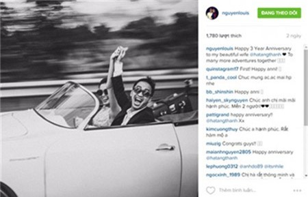 Cho đến giờ Hà Tăng và chồng đã kết hôn được hơn 3 năm. 2 năm tận hưởng cuộc sống vợ chồng son, cặp đôi luôn dành cho nhau những ngôn từ ngọt ngào, lãng mạn. Những khi kỷ niệm ngày cưới, ông xã Louis Nguyễn luôn dành tặng vợ món quà đặc biệt. Mới đây, chính ông xã Louis Nguyễn đã vào bếp nấu ăn tặng vợ. Không chỉ vậy, anh còn chia sẻ tâm trạng đầy hạnh phúc bên bà xã: “Happy 3 Year Anniversary to my beautiful wife. To many more adventures together” (Tạm dịch: Kỷ niệm 3 năm ngày cưới với vợ xinh đẹp. Cần nhiều chuyến phiêu lưu cùng nhau hơn nữa).