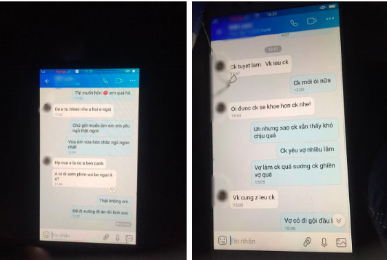 Đính kèm dòng tâm sự chát đắng của người vợ là bức ảnh chụp lại những tin nhắn thân mật của chồng chị với nhân tình. Đáng nói, dù đã có vợ con nhưng người chồng này lại thản nhiên xưng hô thân mật vợ chồng với người phụ nữ khác, không những vậy, họ còn quan tâm nhau và nói những chuyện giường chiếu như thể đang yêu đương nhau thắm thiết.