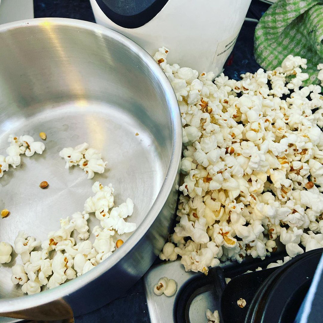 Tôi làm bắp rang bơ mà nó đã nổ tung tóe ra khắp bàn bếp.
