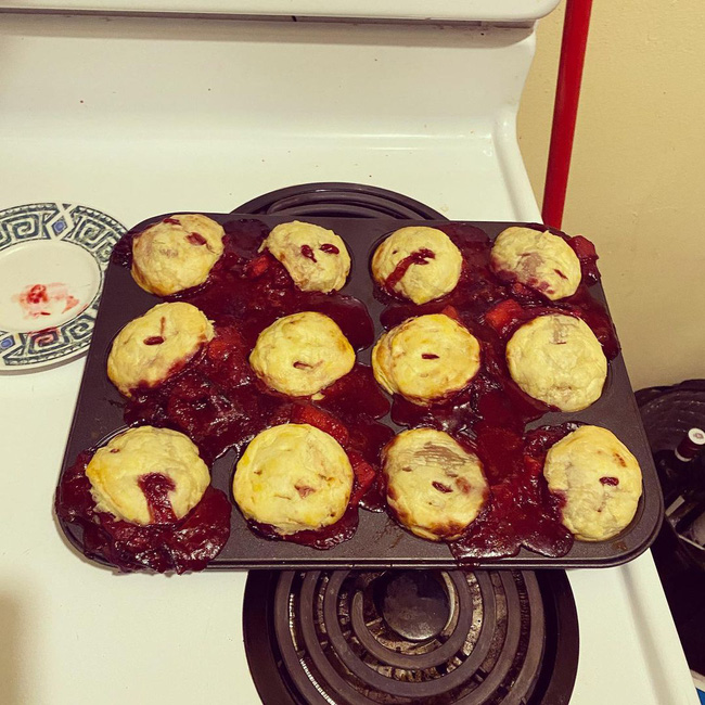 Có ai "khéo" như tôi không. Bánh bên ngoài thì cháy mà bên trong vẫn sống.