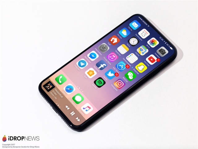 Điều này khiến cho các iFan phải cảm thấy phấn khích bởi thiết kế trông rất đột phá và ấn tượng. Và rất nhanh chóng, nhà thiết kế Benjamin Geskin đã phác hoạ lại dung nhan của iPhone 8, dựa trên những tin đồn rò rỉ gần đây.