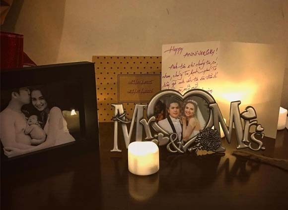 Hoa hậu Diễm Hương hạnh phúc chia sẻ khung cảnh "lãng mạn" được chồng chuẩn bị để kỷ niệm một năm ngày cưới của 2 người