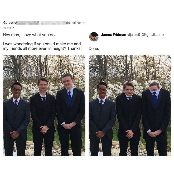 James Fridman là một designer cực nổi tiếng trên Twitter, anh được biết đến qua những bức ảnh "nhờ Photoshop" cực lém lỉnh nhưng cũng không kém phần ý nghĩa.