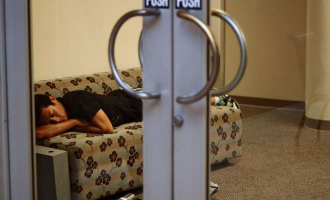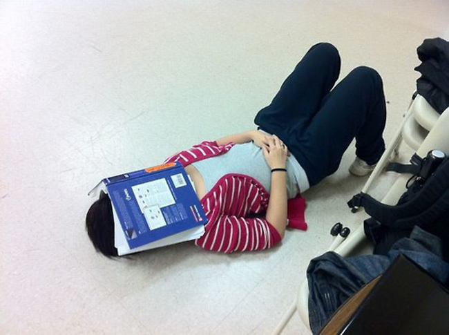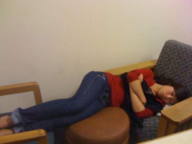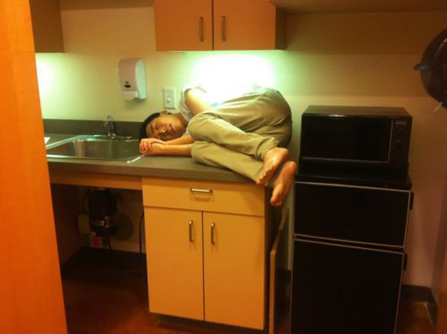 Tranh thủ chợp mắt tí khi chưa đến giờ làm.