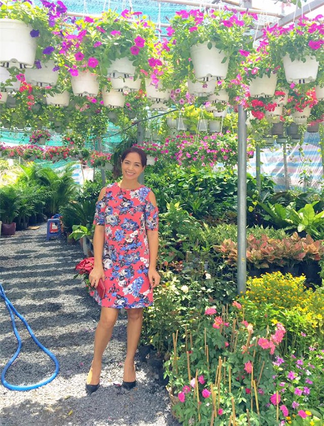 Thúy Hạnh rực rỡ ở cửa hàng cây cảnh. Chị chia sẻ: "Sáng nay đi mua cây cảnh, đang đứng lơ ngơ ngắm cây bỗng đâu một cô gái từ ngoài vào hỏi: "chị chị, nhà chị có bán đất trộn không?" Như nào? Nhìn mình giống bà chủ bán cây cảnh hử cả nhà."