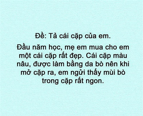 Bố em mua cho em cái cặp rất to và đẹp, hàng ngày em đeo nó đến trường, cái cặp đựng được nhiều sách vở, nó to như cái bình thuốc sâu của mẹ vậy!