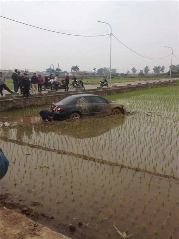 Phải chăng chiếc ô tô này đang thử nghiệm đi dưới ruộng giống kiểu buýt trên sôngnhỉ?