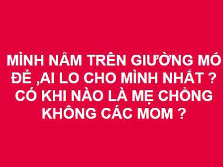 Mệt quá rồi em chả thèm để ý lão luôn. 1 lát mẹ em ra, lão vào, vuốt tóc em nhăn nhở bảo: "Đẻ nữa không vợ? Làm phát nữa". Mệt nói không ra hơi, em bảo: "Anh gửi được đứa nào thì gửi đi. Tôi không đẻ nữa". Lão vẫn cái giọng trêu trêu: "Ô, sao vợ không nói sớm".