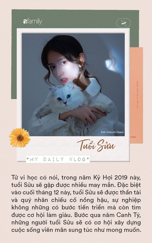 Tử vi học có nói, trong năm Kỷ Hợi 2019 này, tuổi Sửu sẽ gặp được nhiều may mắn. Đặc biệt vào cuối tháng 12 này, tuổi Sửu sẽ được thần tài và quý nhân chiếu cố nồng hậu, sự nghiệp không những có bước tiến triển mà còn tìm được cơ hội làm giàu. Bước qua năm Canh Tý, những người tuổi Sửu sẽ có cơ hội xây dựng cuộc sống viên mãn sung túc như mong muốn, tài vận tuy không quá thăng hoa nhưng cũng đủ để sống dư dả, thoải mái.