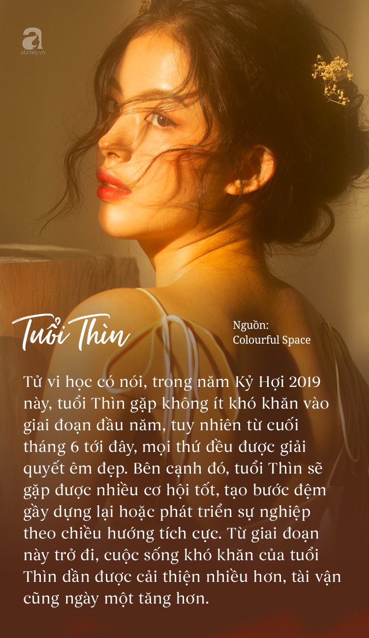 Tử vi học có nói, trong năm Kỷ Hợi 2019 này, tuổi Thìn gặp không ít khó khăn vào giai đoạn đầu năm, tuy nhiên từ cuối tháng 6 tới đây, mọi thứ đều được giải quyết êm đẹp. Bên cạnh đó, tuổi Thìn sẽ gặp được nhiều cơ hội tốt, tạo bước đệm gầy dựng lại hoặc phát triển sự nghiệp theo chiều hướng tích cực. Từ giai đoạn này trở đi, cuộc sống khó khăn của tuổi Thìn dần được cải thiện nhiều hơn, tài vận cũng ngày một tăng hơn, làm gì cũng thuận buồm xuôi gió, cuối năm thành công viên mãn.