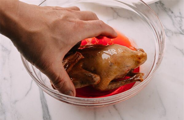 Sau đó để ra đĩa cho phần gia vị sốt ngấm vào thịt chim, phần da khô lại chừng 120 phút.