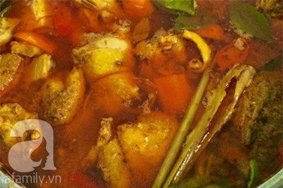![]() | ![]() Cho nước vào xăm xắp với thịt, thêm 2 muỗng canh nước mắm và cho lên bếp. Bật lửa lớn đến khi sôi thì hạ lửa vừa để 25 phút cho khoai mềm. Thêm hành tây và lá chanh vào rồi tắt bếp. |