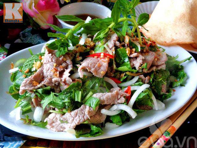 Trình bày: Cho bò tái chanh ra đĩa, thêm vài lát ớt và vài cọng ngò om cùng tỏi hành phi. Món này ăn kèm với mắm nêm và bánh phồng tôm. Chúc các bạn thành công và ngon miệng với cách làm bò tái chanh!