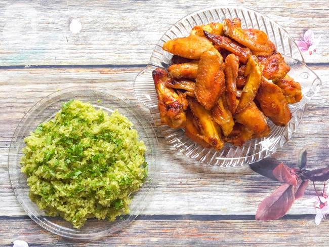 Đây là thành quả của món gà nướng mật ong và xôi ngò rí, 2 món này làm khá nhanh mà ăn chung với nhau thì lại hợp vô cùng. Dịp cuối tuần rảnh rỗi bạn hãy làm ngay để đổi món cho cả nhà nhé!