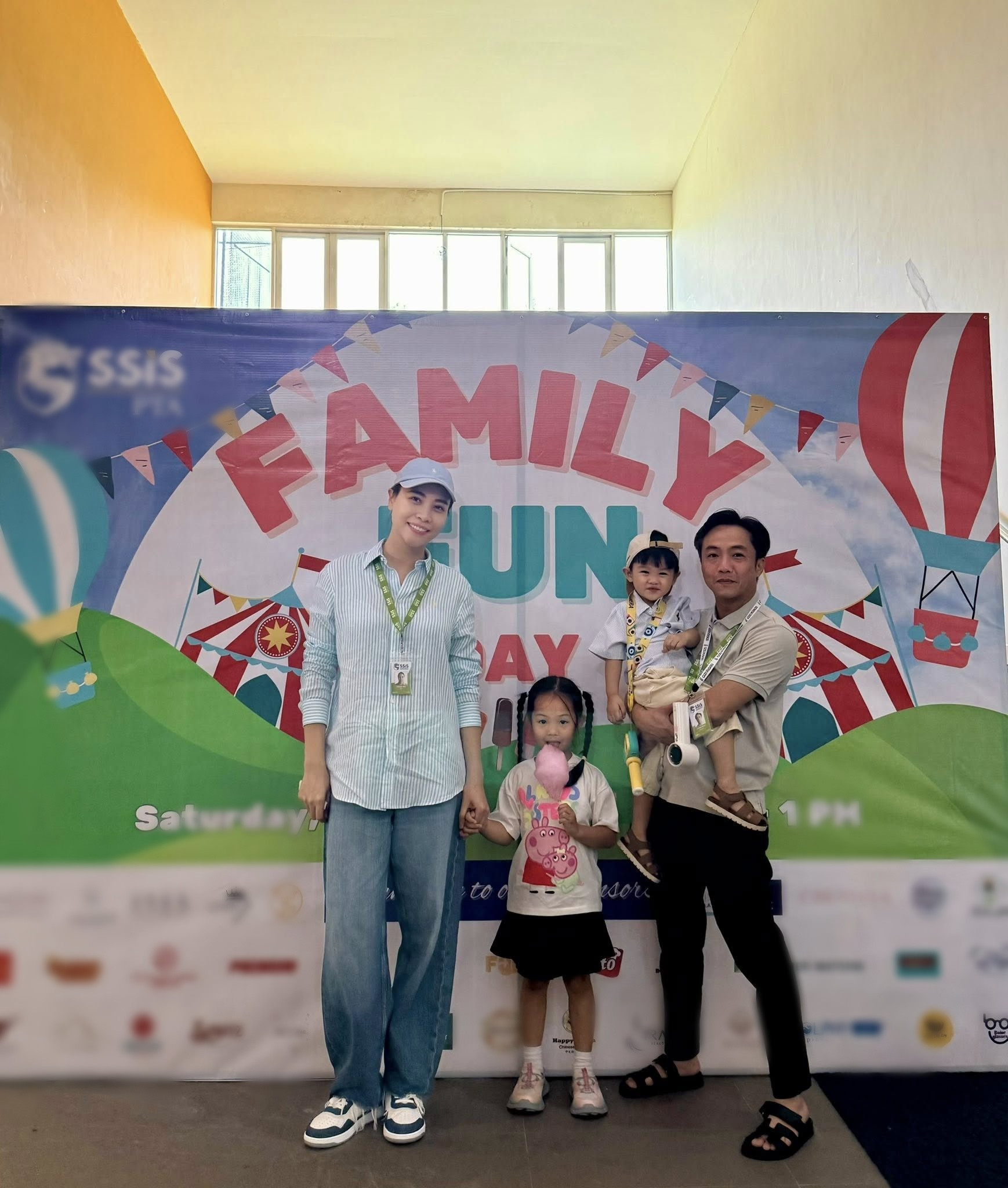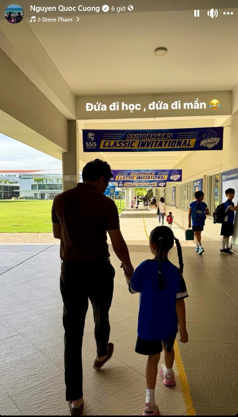 Đại gia phố núi luôn là người bạn đồng hành cùng các con từ tấm bé. Bận bịu đến đâu, ông xã Đàm Thu Trang cũng đích thân đưa ái nữ đến trường. Anh và bà xã cũng thường xuyên tham gia các buổi hoạt động ngoại khóa của trường con gái.