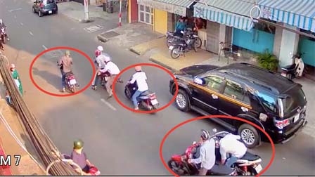 Từ camera trích xuất lại cho thấy nhóm cướp có tổ chức khoảng 5 xe gồm: 1 xe trực tiếp ra tay cướp, 2 xe chạy trước, 2 xe cản địa phía sau đã nhắm vào một người đàn ông. Tên cướp ngồi sau xe Honda AirBlade ra sức giật thứ được cho là ví tiền, còn nạn nhân cố gắng kéo lại quyết liệt. Cuộc giằng co kéo dài từ giữa đường cho tới vỉa hè bên phải nhưng không có bất cứ người dân nào tham gia giúp nạn nhân.