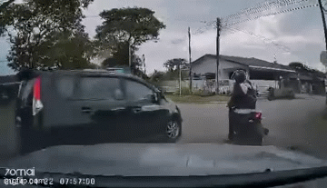 Hình ảnh từ camera hành trình của một chiếc ô tô ghi lại cho thấy vụ việc diễn ra vào khoảng 8 giờ sáng ngày 22/4 vừa qua. Theo đó, một phụ nữ 58 tuổi ở thành phố Kuching, bang Sarawak của Malaysia đang đi bộ trên đường thì gặp phải 2 tên cướp đi xe máy màu đỏ, đầu đội mũ bảo hiểm che kín mặt. Một trong 2 tên đã giật lấy túi xách của nạn nhân rồi định lên xe tẩu thoát cùng đồng bọn.