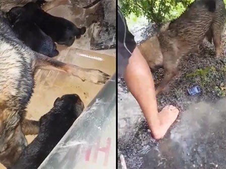 Chó mẹ quên mình cứu con khiến cộng đồng mạng xúc động