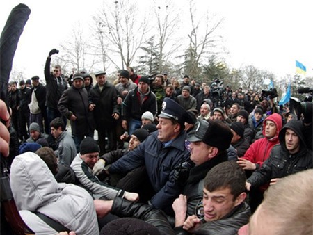 Xung đột giữa người biểu tình ủng hộ Nga và người ủng hộ chính quyền lâm thời ở Ukraine. (Nguồn: AFP/TTXVN) |