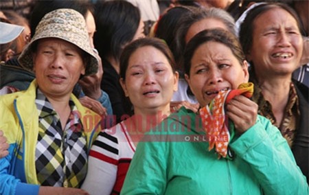 Người nhà đưa thi thể 2 nạn nhân về mai tang. |
