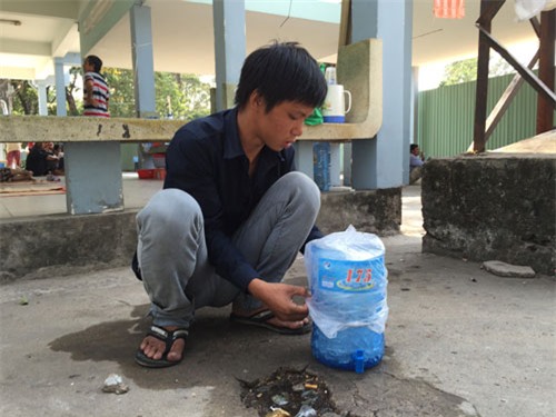 Anh ruột của nạn nhân Bùi Hoàng Thiên Phương đang dùng đá ướp bàn tay của em trai mình |