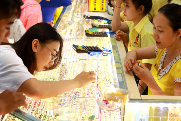 Ngoài bánh bao chị em còn có thêm lựa chọn khác là bánh làm từ thạch với tạo hình thỏi vàng, tài lộc bắt mắt. Loại bánh này phù hợp dâng lên ban thờ ngày Thần Tài để hút tài lộc. Giá bán cho một hộp gồm 2 bánh tài lộc, 8 thỏi vàng là 120 nghìn đồng.
