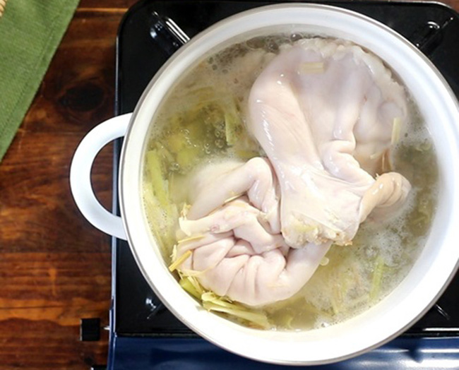 Bước 4: Chần dạ dày lợn qua nước sôi có muối, giấm và rượu gừng (nếu có).