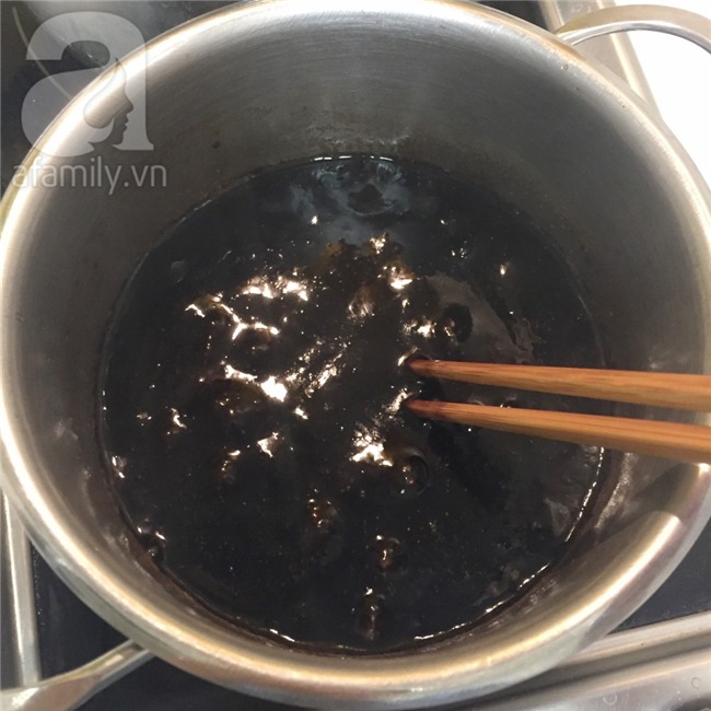 Đặt lên bếp đun, vừa đun vừa khuấy đều tay để sương sáo không bị vón cục.