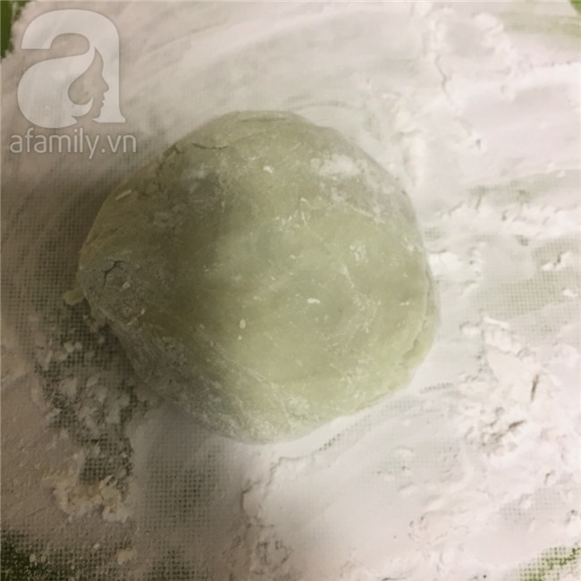 Cho bột ra mặt phẳng, thêm 50g bôt năng còn lại vào nhào kỹ để được khối mịn.