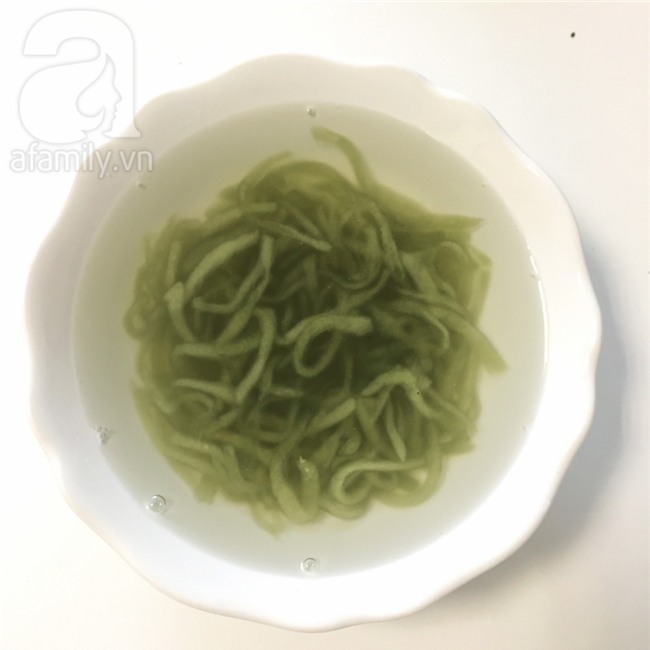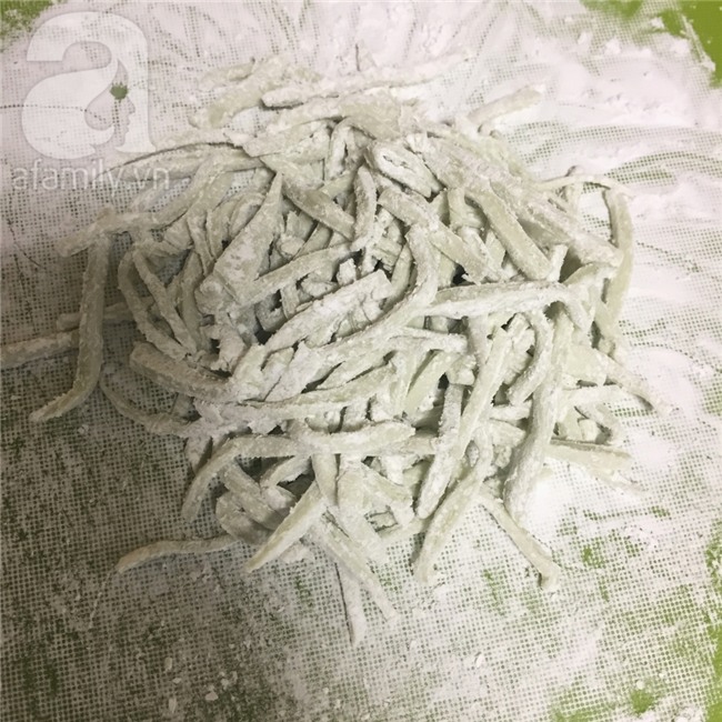 Dùng cây cán bột cán phẳng, sau đó cắt thành từng sợi dài.