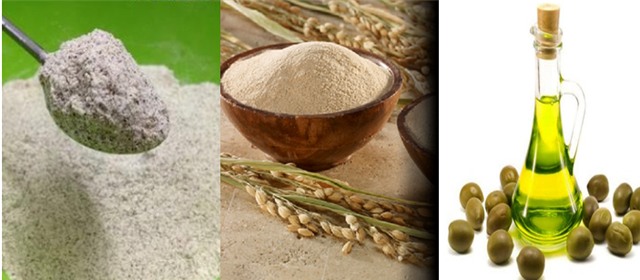 - Bước 1: Cho bột đậu đỏ, cám gạo và dầu oliu vào bát sạch rồi cho thêm một chút nước lọc. Sau đó, trộn đều đến khi được một hỗn hợp đặc sánh.
