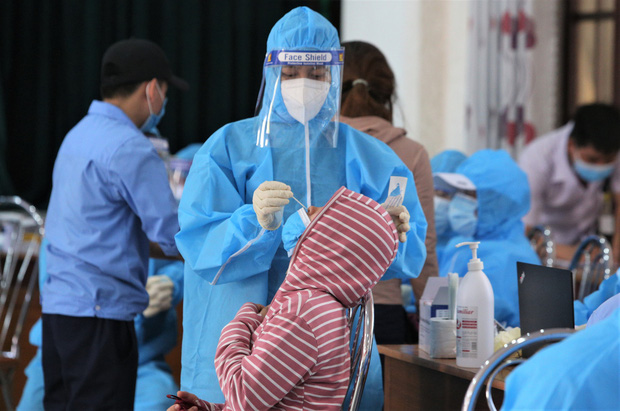 Lấy mẫu xét nghiệm Covid-19 cho công nhân làm việc tại KCN Hòa Khánh (quận Liên Chiểu, Đà Nẵng)