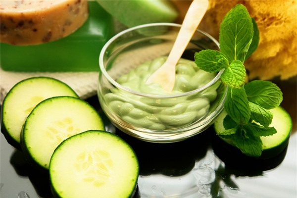 Dưa chuột chứa vitamin A, B1, B2, C, các chất khoáng và hơn 90% nước nên dưa chuột được chị em sử dụng trong nhiều công thức làm đẹp từ xa xưa. Đắp mặt nạ dưa chuột không chỉ cấp nước, khắc phục làn da sạm đen do thường xuyên ngồi máy tính mà còn giúp da bạn trắng hồng tự nhiên. Cách làm rất đơn giản, bạn chỉ cần rửa sạch, thái lát mỏng dưa chuột và đắp lên mặt rồi nằm thư giản 15 - 20 phút. Đắp dưa chuột lên mắt cũng giúp làm giảm quầng thâm và sáng da vùng mắt nữa đấy.