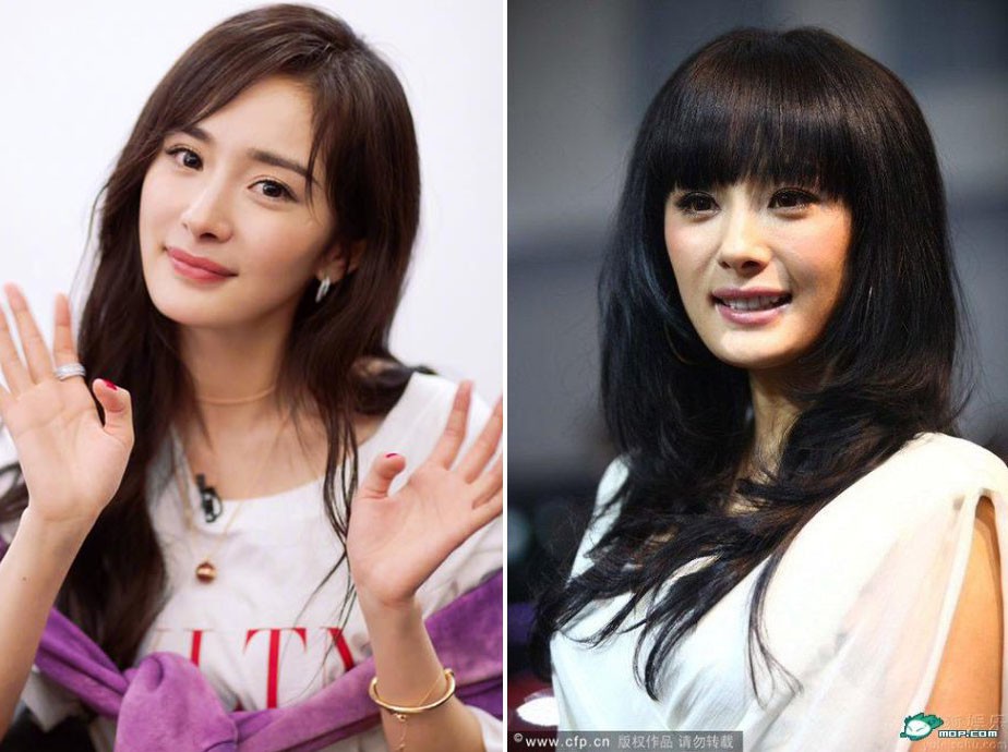 Vốn có nhược điểm là vầng trán hói nên Dương Mịch đã từng thử nghiệm qua kiểu tóc mái bằng dày cộp để che đi nhược điểm này. Đáng tiếc che được trán hói nhưng kiểu tóc này lại làm lộ phần cằm vuông và khiến gương mặt của cô ngắn lại. Giờ đây bà mẹ 1 con chỉ thường gắn bó với kiểu tóc mái dài buông xõa vừa dịu dàng, nữ tính lại khiến gương mặt thanh thoát.