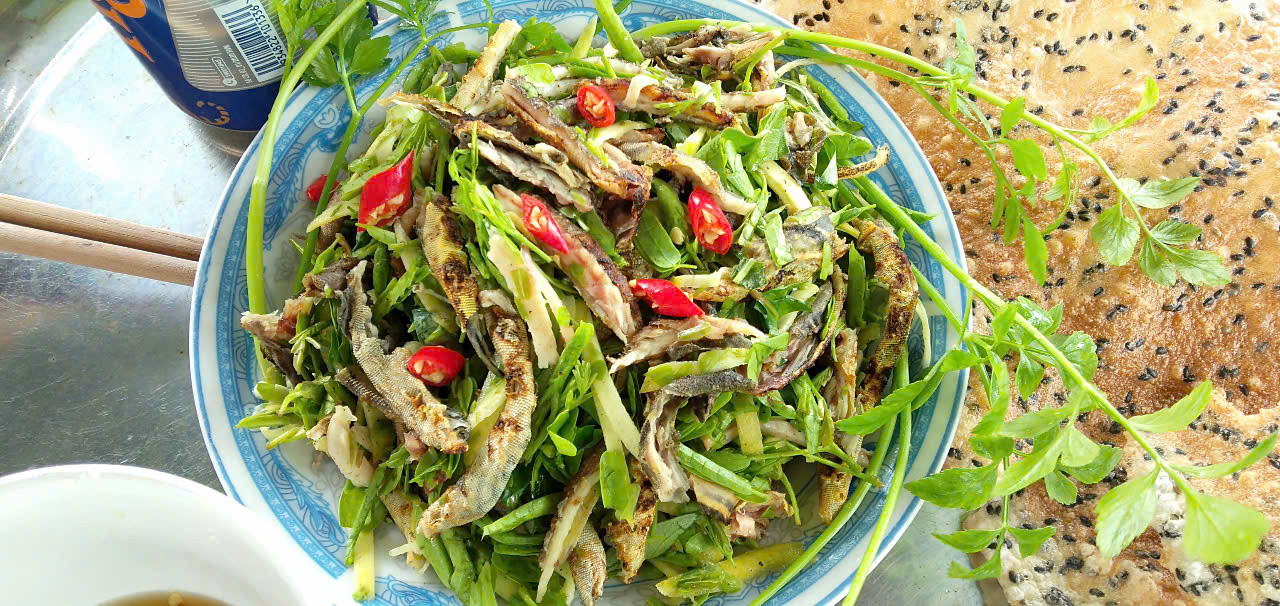 Ở Bình Thuận, con dông là nguyên liệu chế biến ra nhiều món ngon hấp dẫn như gỏi dông, chả dông, dông nướng muối ớt, dông bằm xúc bánh đa, cháo dông…