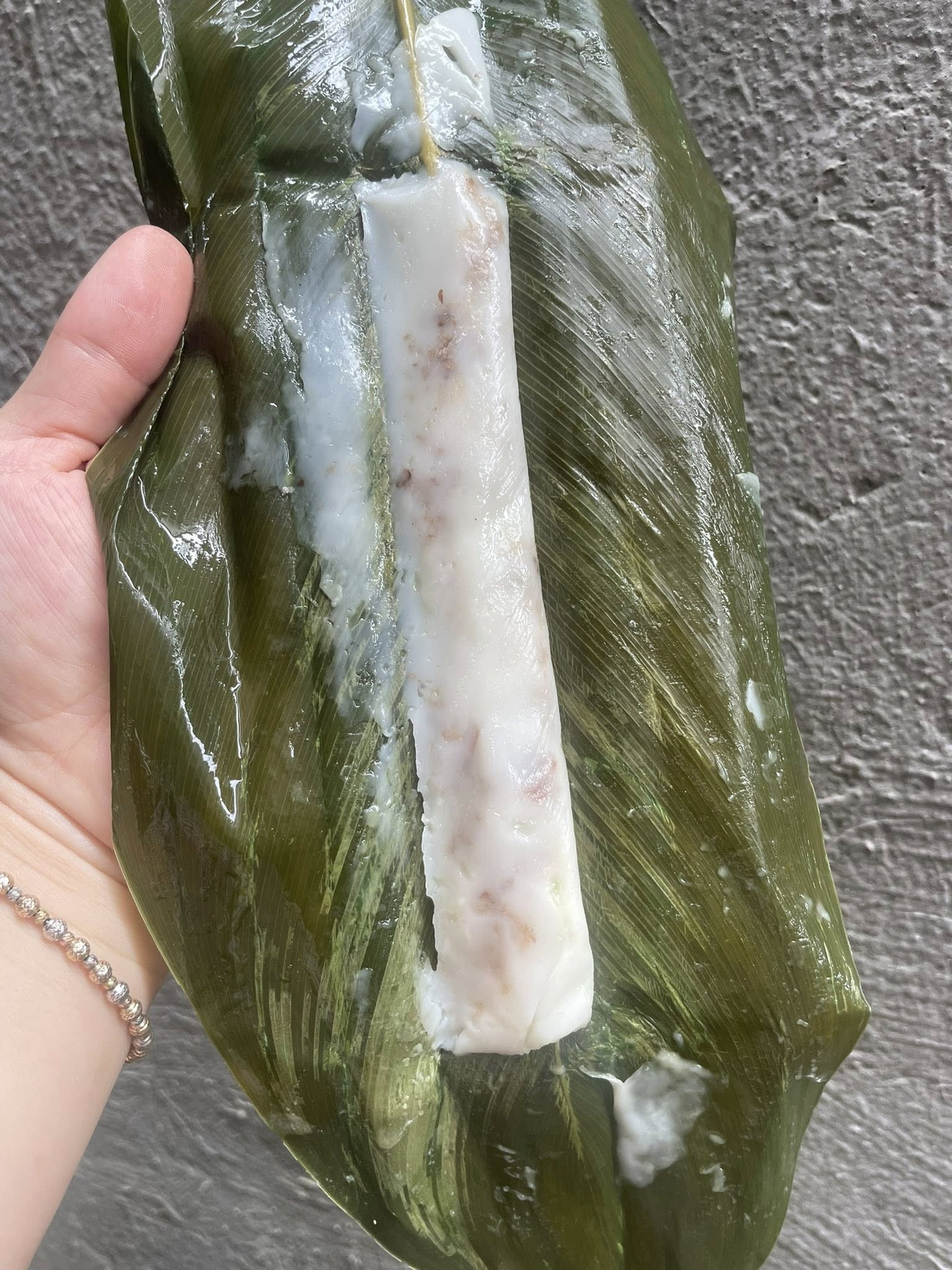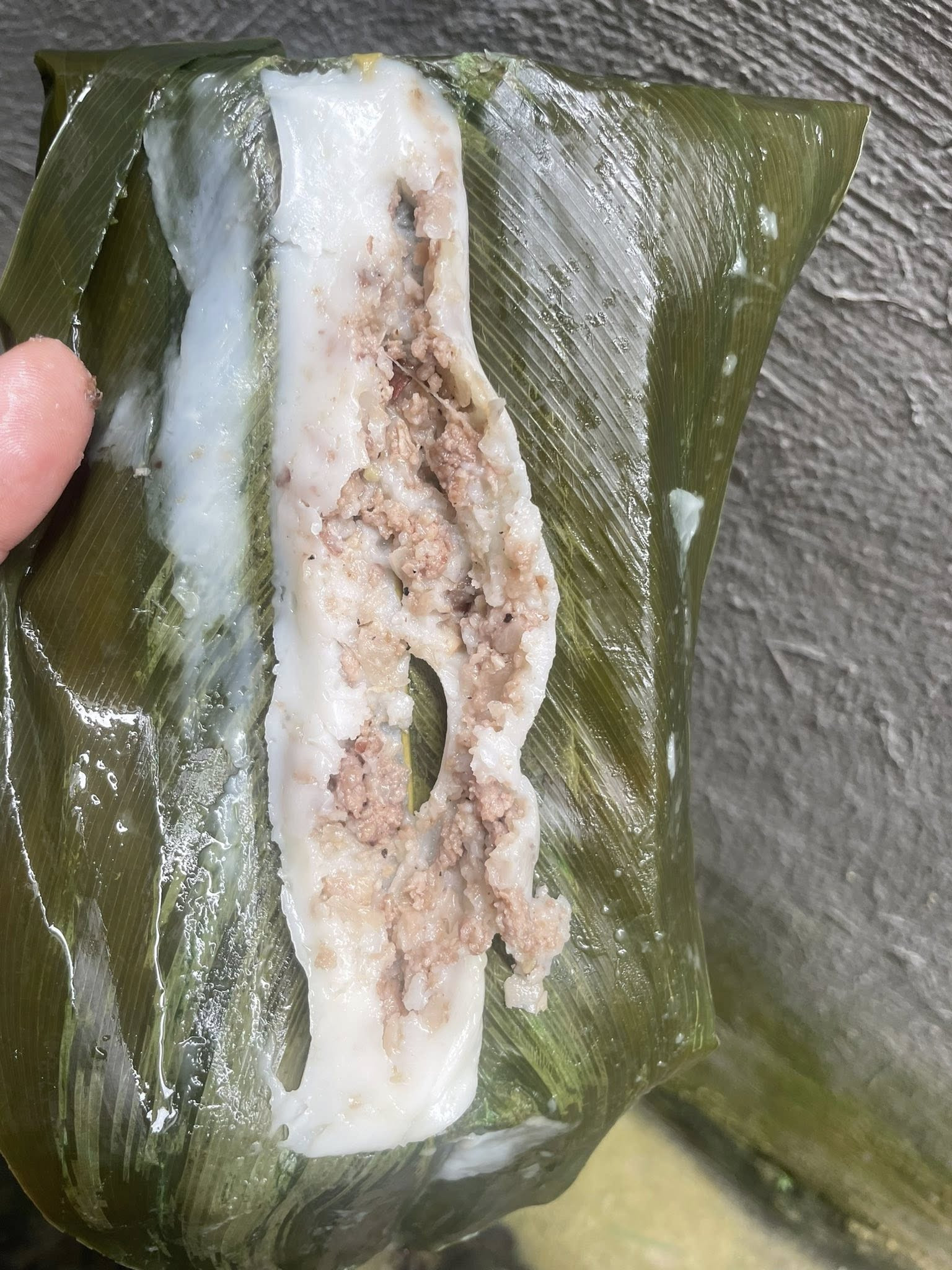 Bánh được làm từ bột gạo tẻ, bên trong là nhân thịt ba chỉ, mộc nhĩ băm nhỏ trộn với hạt tiêu, muối, hành khô.