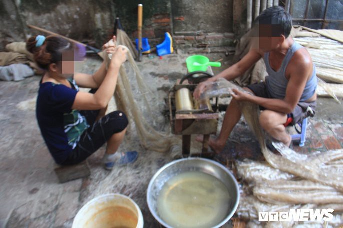Những sợi miến vương vãi khắp nơi sản xuất.