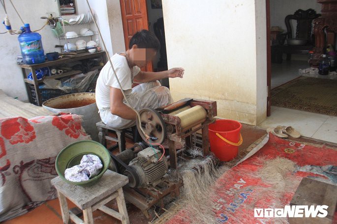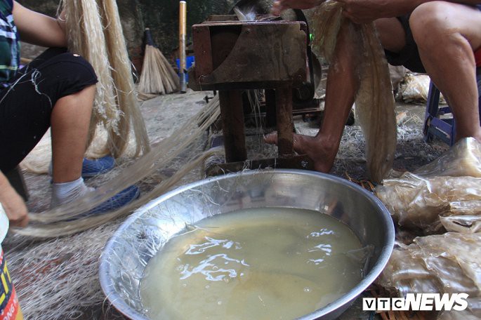Người dân dẫm chân trần trên miến để miến có độ xoắn và bó lại với nhau.