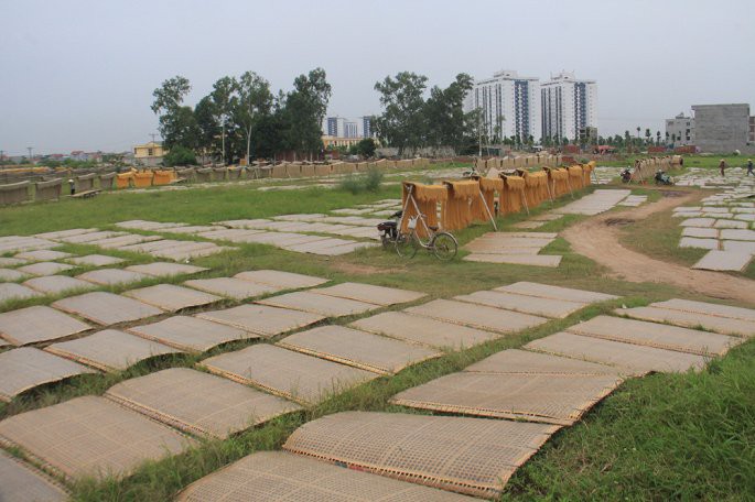Miến được phơi ngoài trời tại một khu đất rộng.
