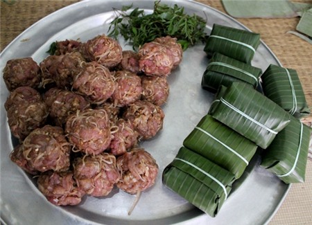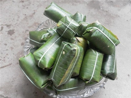 nem tròn to bằng nắm tay bọc trong lá đinh lăng, dùng thật nhiều lá