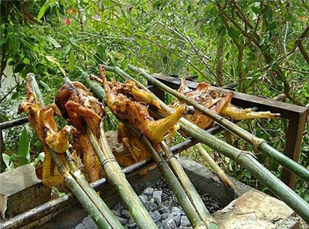Sau khi làm xong, gà để nguyên con, có thể dần cho con gà bẹp lại rồi ướp muối ớt, nước sả và thêm ít mật ong rừng. Chú ý, sả được giã nhỏ rồi chỉ lọc lấy nước chứ không ướp cả củ, nước sả càng nhiều, thịt nướng càng thơm ngon. Con gà thường được kẹp vào thanh tre rồi quay đều trên lửa than. Bếp than to nên một lần có thể nướng quay nhiều con, cứ vài phút xoay trở một lần cho đến khi gà chín chuyển sang màu vàng, tươm mỡ bóng nhẫy. Thoạt nhìn cũng đủ cồn cào dạ dày.