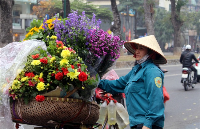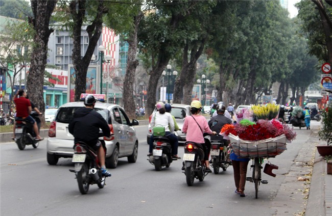 Trên những con “ngựa sắt” cà tàng, họ chở những thúng hoa lớn, cao vượt đầu người qua những con phố lớn, mặt đường thông thoáng và đông người qua lại như Giảng Võ, Nguyễn Chí Thanh, Láng Hạ, Phan Đình Phùng,...